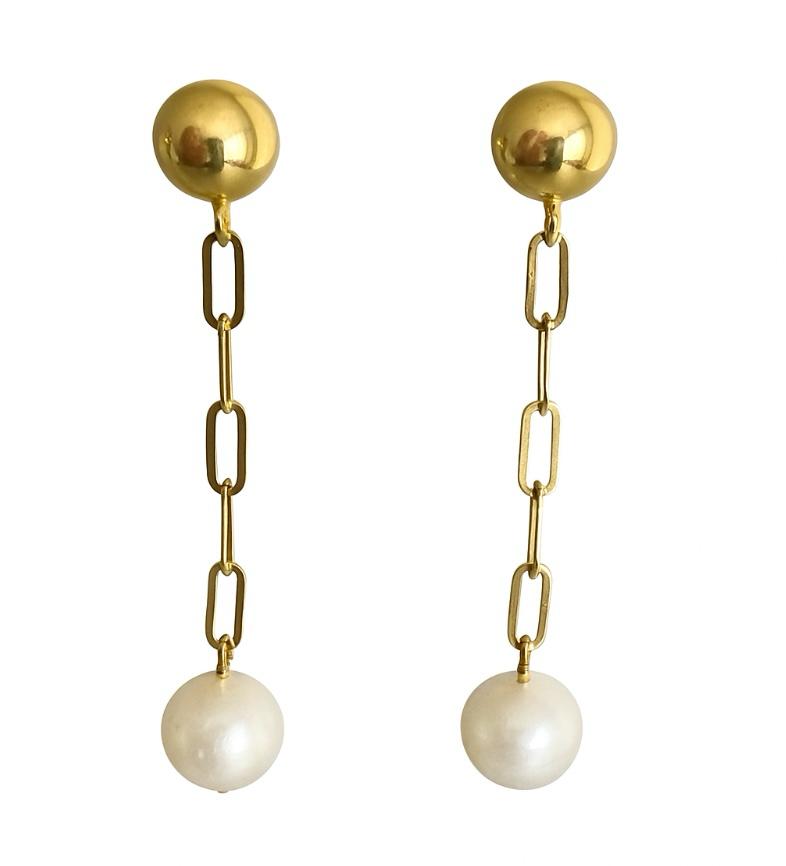 Zarte Glieder aus vergoldetem 925er Silber tragen am Ende das Leuchten einer Süßwasserzuchtperle – wie ein Tropfen Mondlicht, der sich an einer goldenen Kette verfängt. Schlicht und doch voller Eleganz schweben diese Ohrringe zwischen Klarheit und Poesie.
